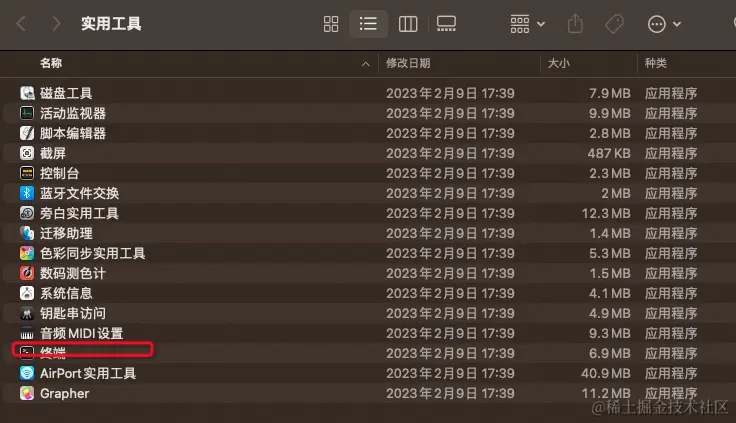 从访达->前往->实用工具->终端