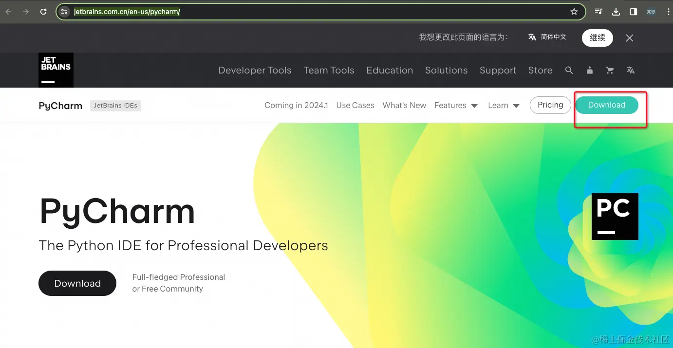 - 登陆pycharm官网:www.jetbrains.com.cn/en-us/pycha…