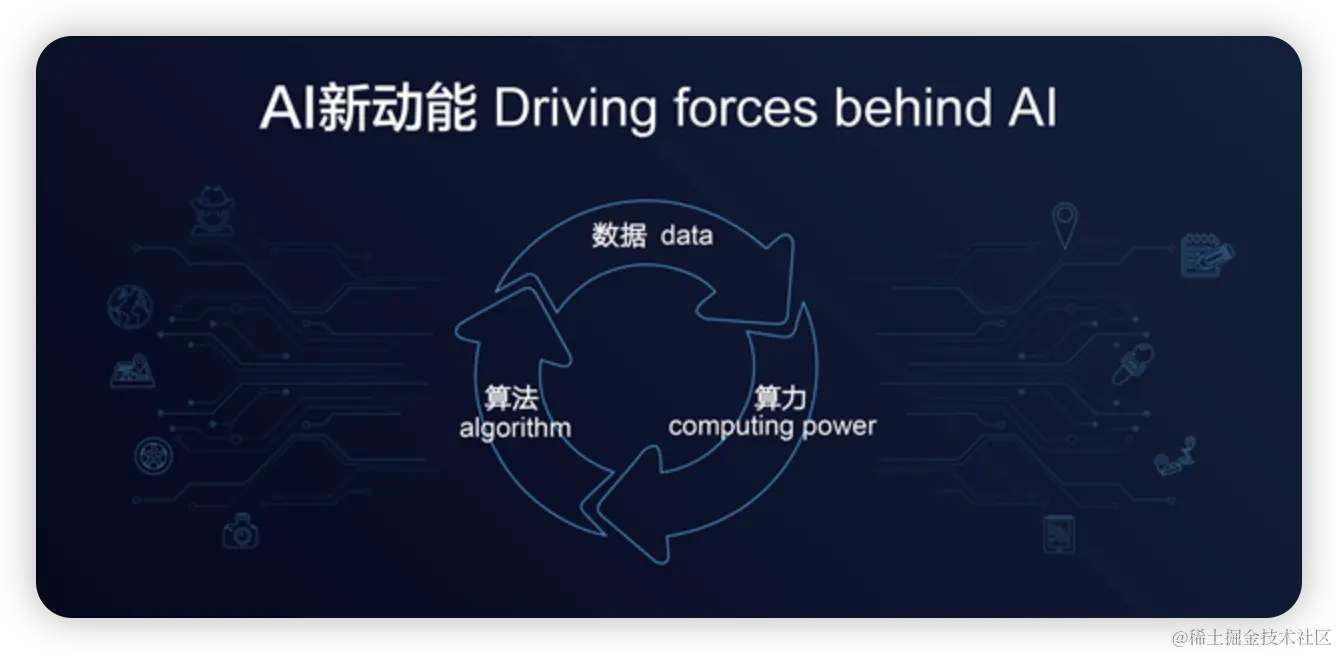 我从 AI 的三驾马车 "算法"、"数据"、"算力" 三个角度来说。
