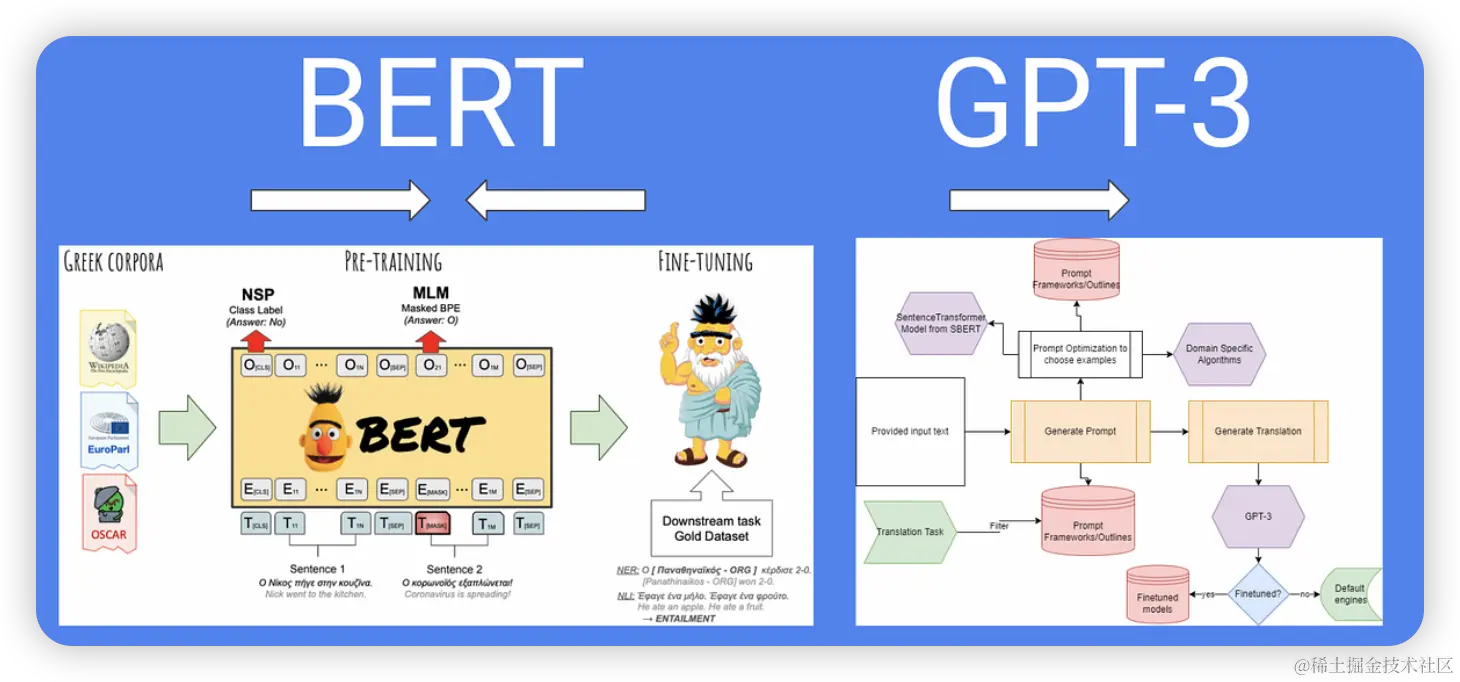 - 算法 ==> 一个很大的原因是 openai 很好的抓住了 Transformer 构建大模型的风口,要知道现在的不管是 ChatGPT 的底座 GPT、DALL-E 的底座扩散模型还是最近的 Sora (这里需要解释一下,之前的扩散模型的 Base 一般是 Unet,但后来 Transformer 和扩散模型的梦幻联动效果很棒,类似的工作可以参考谢赛宁撰文的《 Scalable Diffusion Models with Transformers 》) ,其中的核心都是 Transformer。而正是因为 openai 很好抓住了 Transformer 这个技术架构,并基于它并将它发扬光大 (虽然 Transformer 是 google 2017 年提出来的,后来也发展出了 BERT,但是现实的发展证明 openai 的 GPT 技术方向更优) 而这个架构刚好又是这些通用 AIGC 技术一个很好的解法,所以算法方面自然是 openai 先做起来了 (当然其实算法方面也不能忽略 meta,LLaMA 直接会让 meta 处于算法的第一梯队);