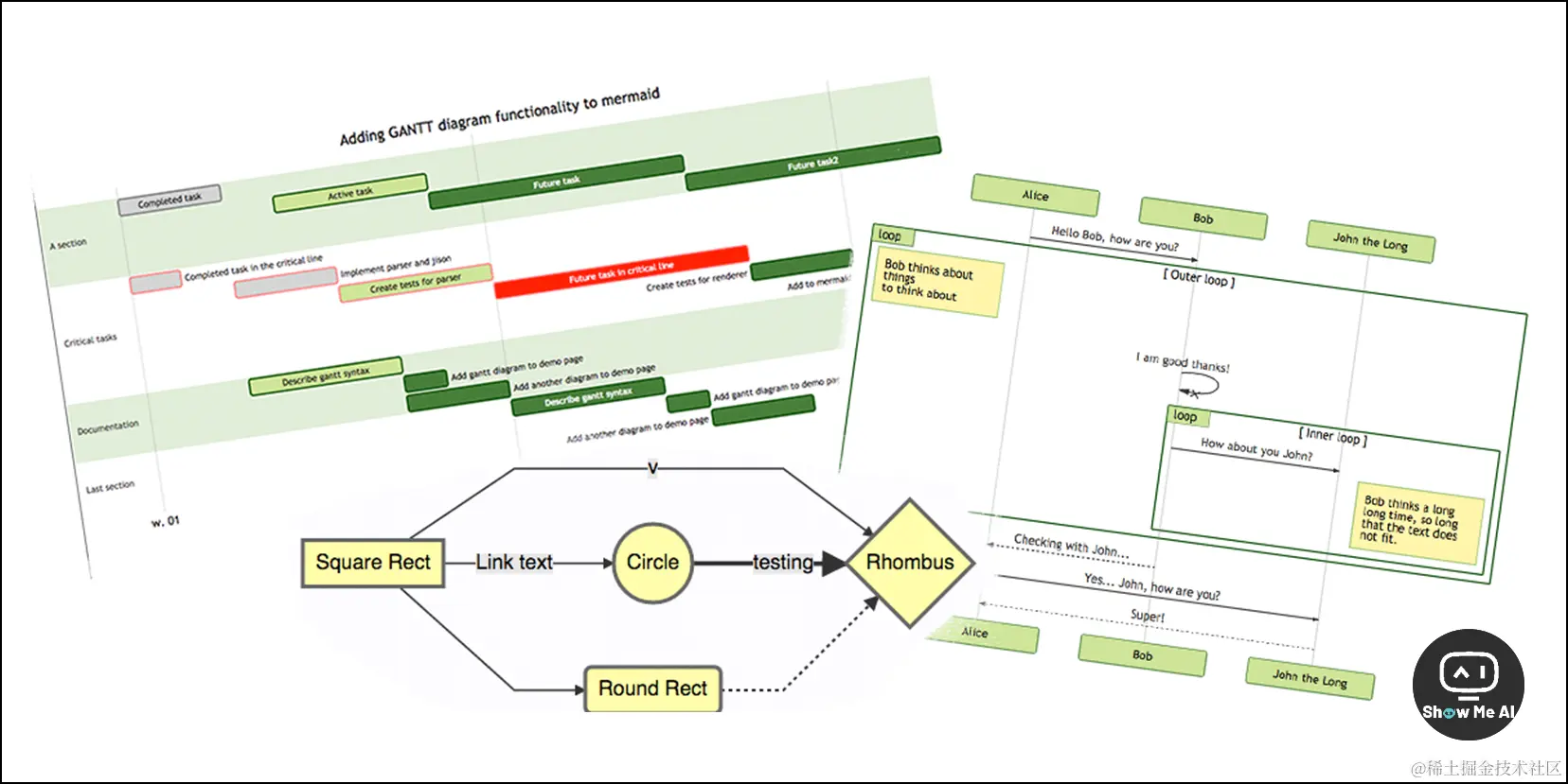 Mermaid 是一个基于 JavaScript 的图表绘制工具。简单来说,它允许你使用文本&代码来创建可视化的图表 (如上图)。
