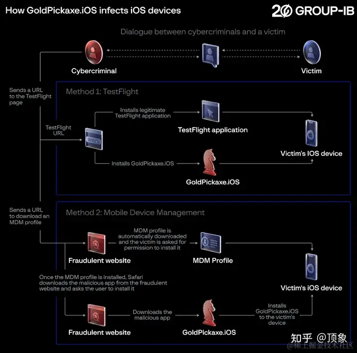 欺诈分子诱导iOS用户安装TestFlight ,或者下载 MDM 配置文件,然后就可以将“GoldPickaxe”iOS版恶意软件,安装到用户的iPhone、iPad 、 Mac等设备上。
