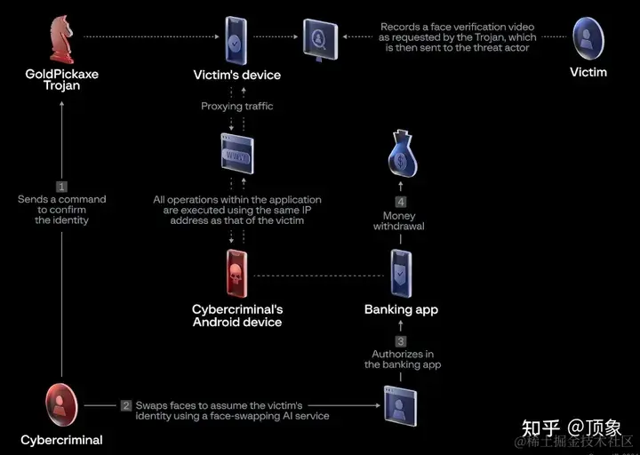 2024年2月15日,国外安全公司Group-IB宣布,发现一个名为“GoldPickaxe”的恶意软件。该恶意软件的iOS版本,诱骗用户进行人脸识别、提交身份证件,然后基于用户的人脸信息进行深度伪造。