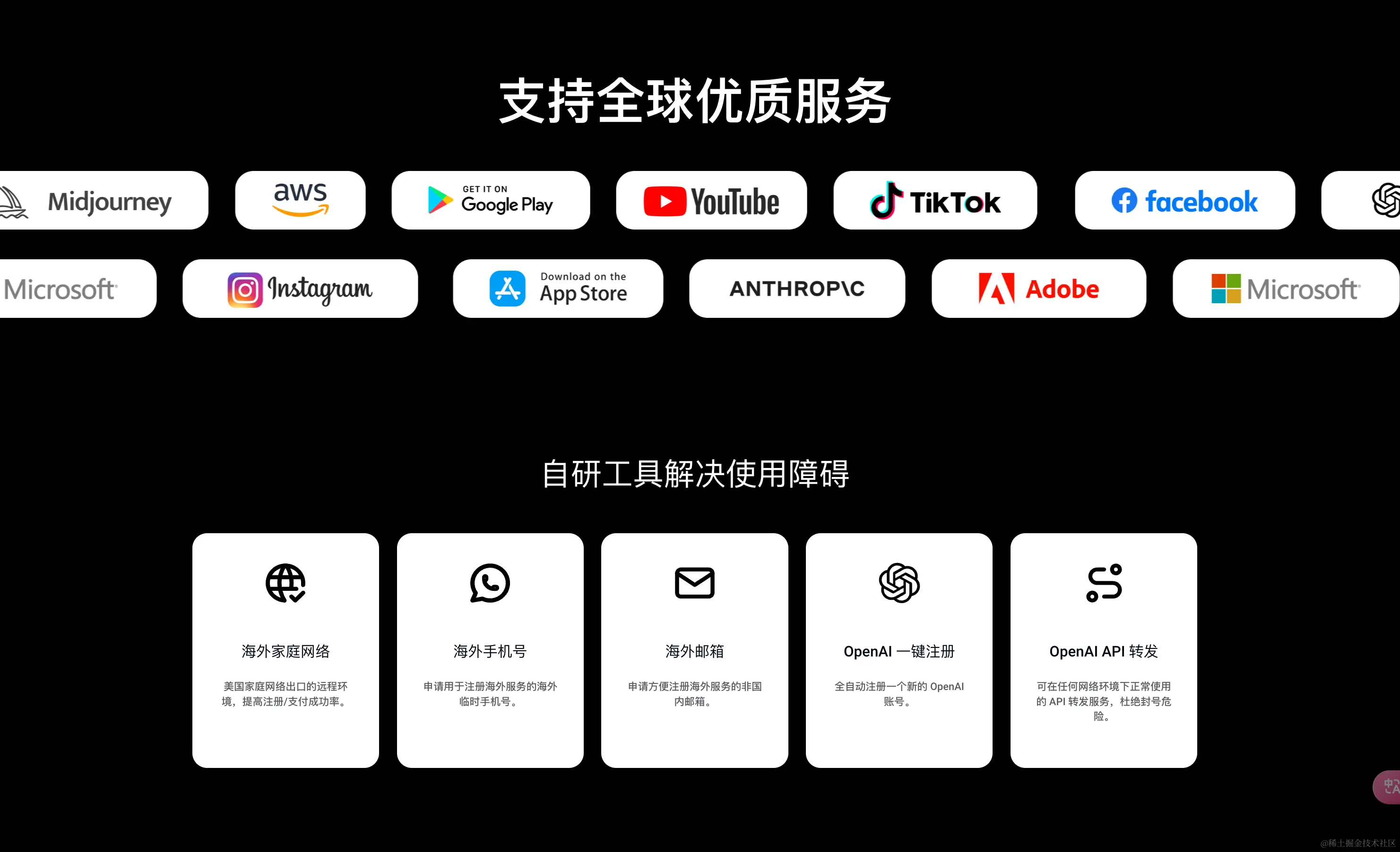 - 注册:注册的时候,如 openai,可能会需要提供海外手机号验证码
