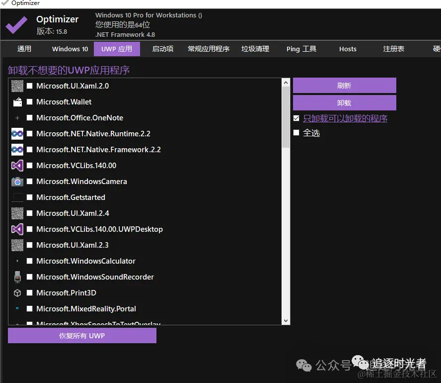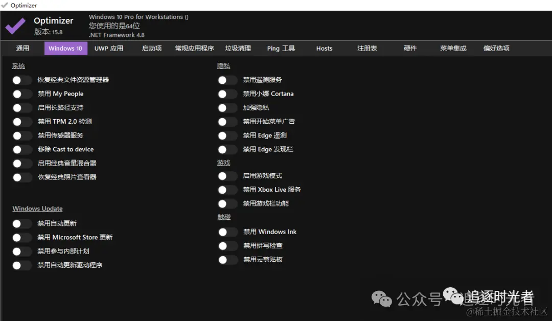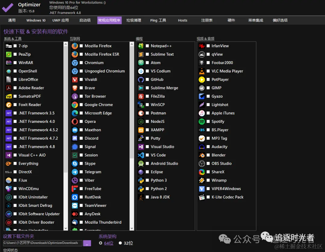 - 项目简介:Optimizer是一款功能强大的Windows系统优化工具,可帮助用户提高计算机性能、加强隐私和安全保护。该工具支持22种语言,同时提供了许多实用的功能,如关闭不必要的Windows服务、停止Windows自动更新、卸载UWP应用、清理系统垃圾文件和浏览器配置文件、修复常见的注册表问题等。此外,Optimizer还提供了硬件检测工具、IP连通性和延迟测试工具、快速更改DNS服务器、编辑HOSTS文件、识别和终止文件锁定句柄等实用工具。