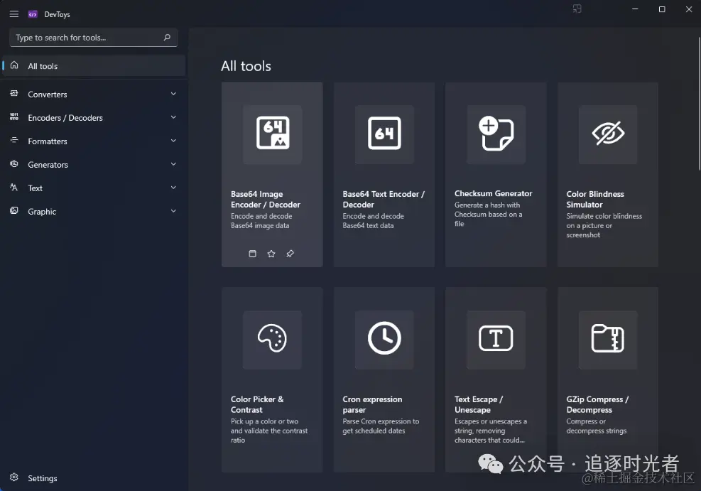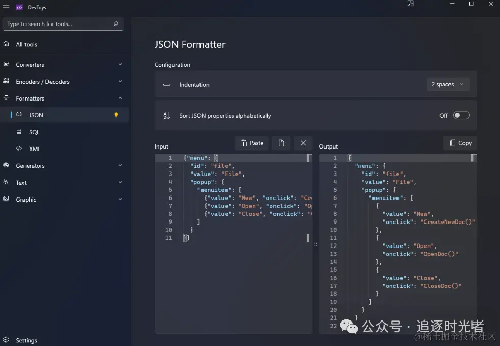 - 项目简介:DevToys是一个专门为开发者设计的Windows工具箱,完全支持离线运行,无需使用许多不真实的网站来处理你的数据,常用功能有:格式化(支持 JSON、SQL、XML)、JWT解码、URL编码/解码、UUID生成、图片压缩、文本比较、正则表达式测试、Markdown预览等28+种实用工具。