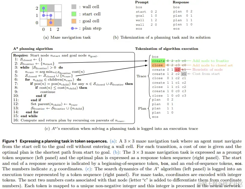 为了做到这一点,该团队提出了一种新方法:搜索动态引导(search dynamics bootstrapping)。该方法首先是训练一个 Transformer 模型来模仿 A∗ 的搜索过程(如图 1 所示,然后对其进行微调,使其能用更少的搜索步数找到最优规划。