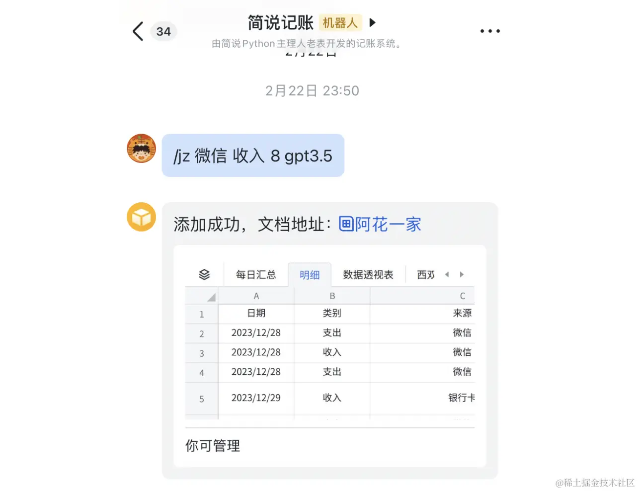 今天的主题是:使用Python联动飞书文档+机器人,实现一个专属的记账助手,这篇文章如果对你帮助极大,欢迎你分享给你的朋友、她、他,一起成长。