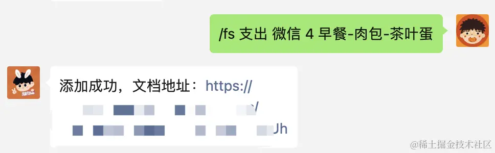 1、通过关键词触发机器人记账,比如/fs 支出 微信 18 午饭,其中/fs 为触发关键词,后面的四项分别是:类型、支付渠道、金额、备注。