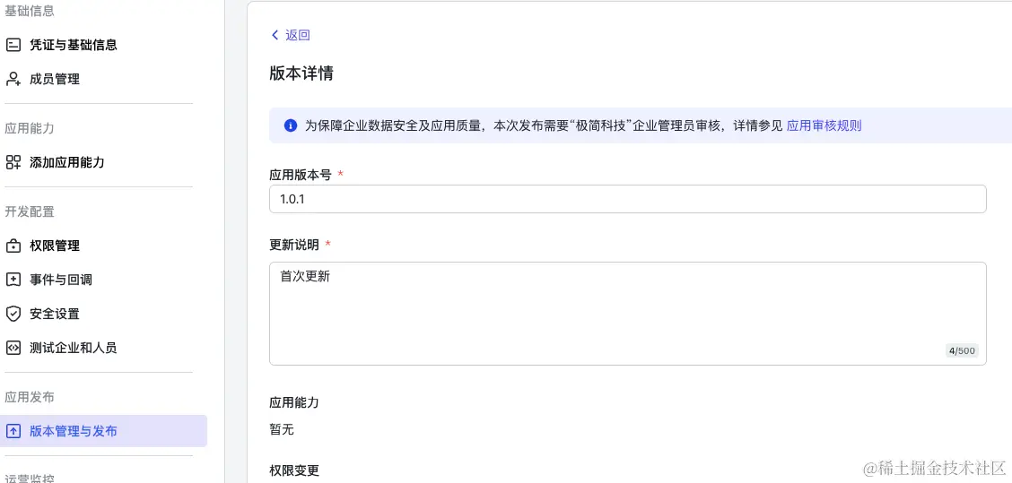 在版本创建页面点击创建版本,然后根据提示输入版本号、更新说明、申请理由即可。