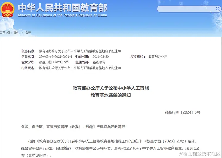 2月20日,教育部公布了184个中小学人工智能教育基地的名单,AI学习已经正式走进基础教育阶段。