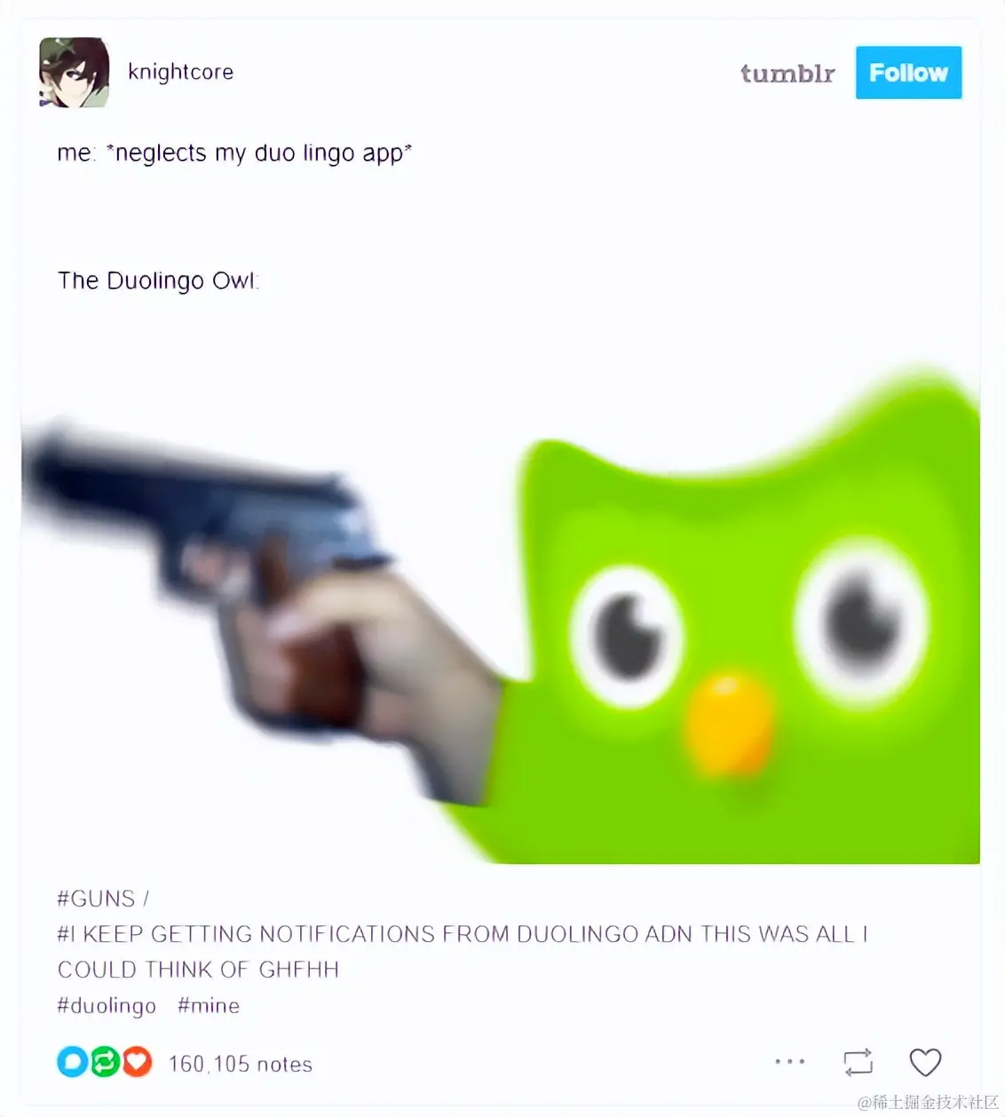 短信里的多儿像极了舔狗,它哭着你求着你盼着你回来学习英语/日语/韩语/法语。而在社交平台上,多儿却化身PUA大师,追杀每一个不学习西班牙语的用户,叫嚣着“要么学习,要么狗带”。精通威胁恐吓,出尽百宝只为了让你登录学习。很多用户留言说,多邻国很像我的小学/初中/高中老师,劝学劝到骨子里。它真的,我哭死。