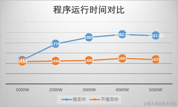 指定ID比不指定ID的性能下降了63%,且加剧趋势。