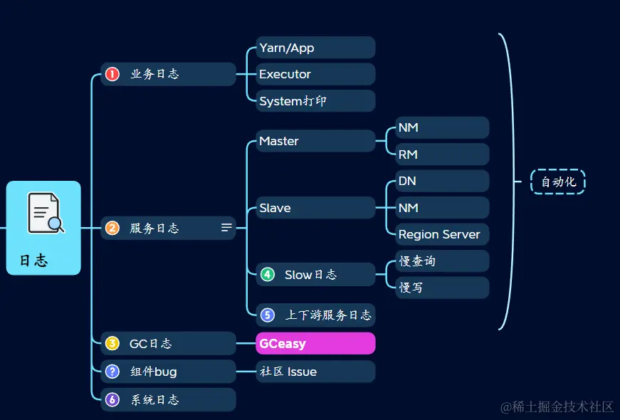 任务日志:对于运行在YARN等分布式计算框架上的任务,首先要获取任务执行过程中的标准输出(stdout)和标准错误(stderr)日志,这些日志可能包含了任务启动、运行、失败的具体信息,包括错误栈、资源分配状况、任务进度等。