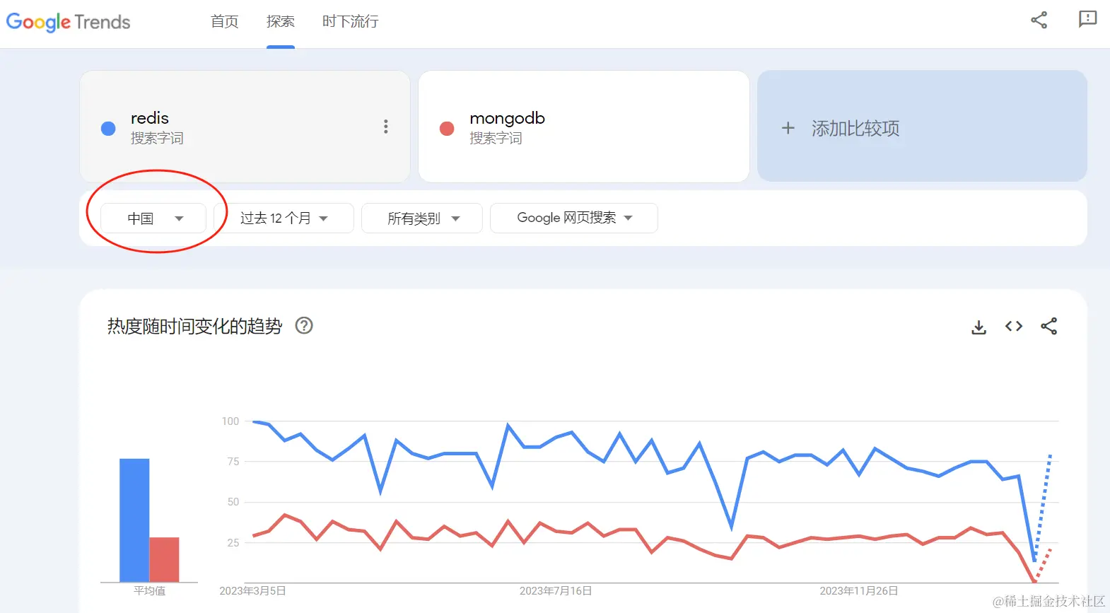 全球数据可以看到mongodb高出redis不少。