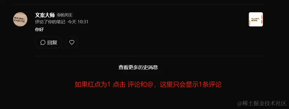 评论与@按钮上是否有红点元素,如果出现,就代表着此时有新评论过来了你需要注意的是,当有新的红点出现,你点击该按钮,此时下方展示的评论都是信的评论,老的评论都将不展示。(