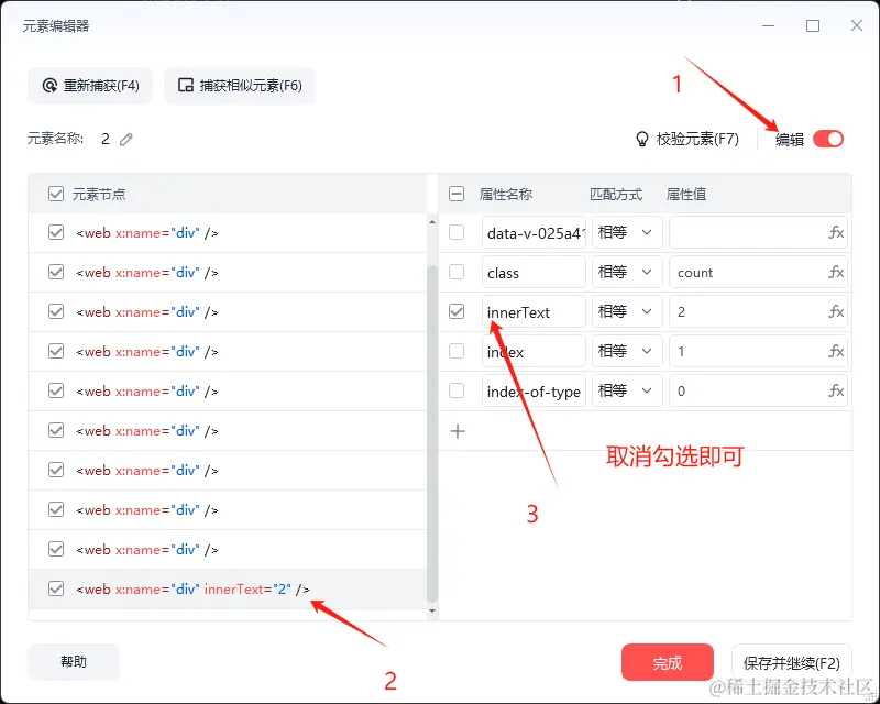 评论与@按钮,以展示新的评论。然而,阿陆再次遇到了挑战,经过排查后发现,当评论只有一条时,元素竟然失效了!阿陆秉持着不屈不挠的精神,再次去捕获该元素,终于发现了问题所在。原来,在第一次捕获元素时,元素的定位已经固定了其值,也就是说,只有当红点的值等于2时,才能成功定位到该元素。既然问题已经找到,解决起来就相对容易了,只需取消对应的勾选即可。