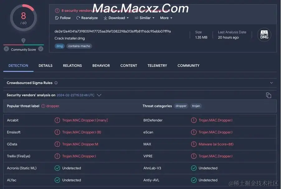 Atomic Stealer 新变种依然通过各种“破解版”应用分发,隐藏在 .dmg 文件中,而且可以躲过苹果 macOS 系统的安全审查。用户安装这些破解版应用之后,就会同步安装新变种。