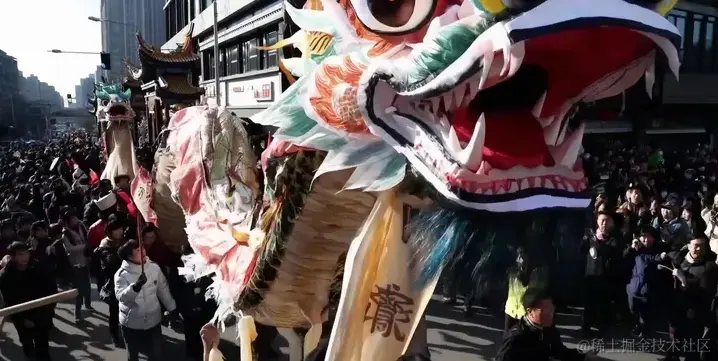 翻译:一个有中国龙的中国农历新年庆祝视频。