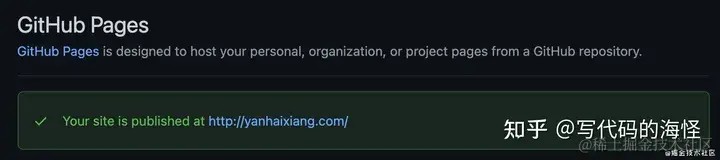 Github 就很简单了,首先在 Settings 处填入刚刚购买的个人域名。