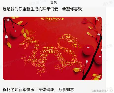 - 以“xxx”为核心词,以“xx给您拜年了”为标题生成一个词云