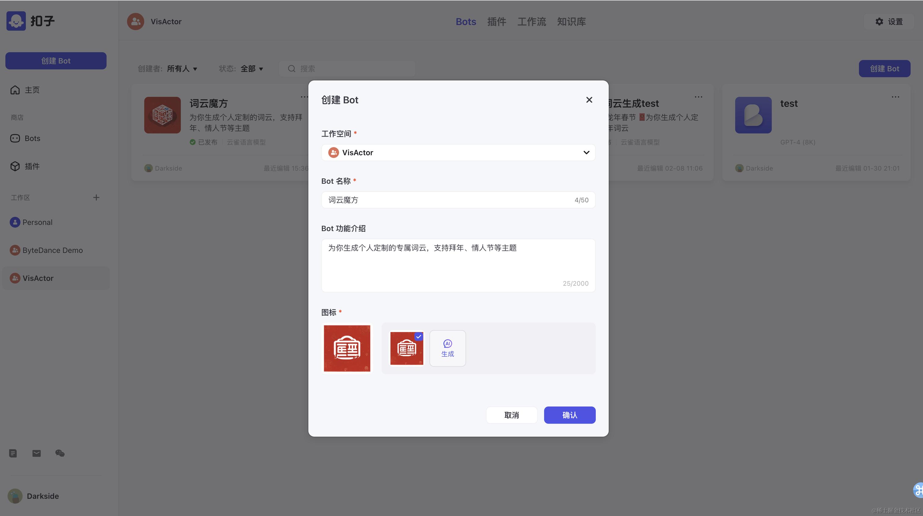 只要你有想法,都可以用扣子快速、低门槛搭建专属于你的 Chatbot,并一键发布到豆包、飞书、微信服务号,或者海外的 Discord、WhatsApp、Twitter 等各个渠道。