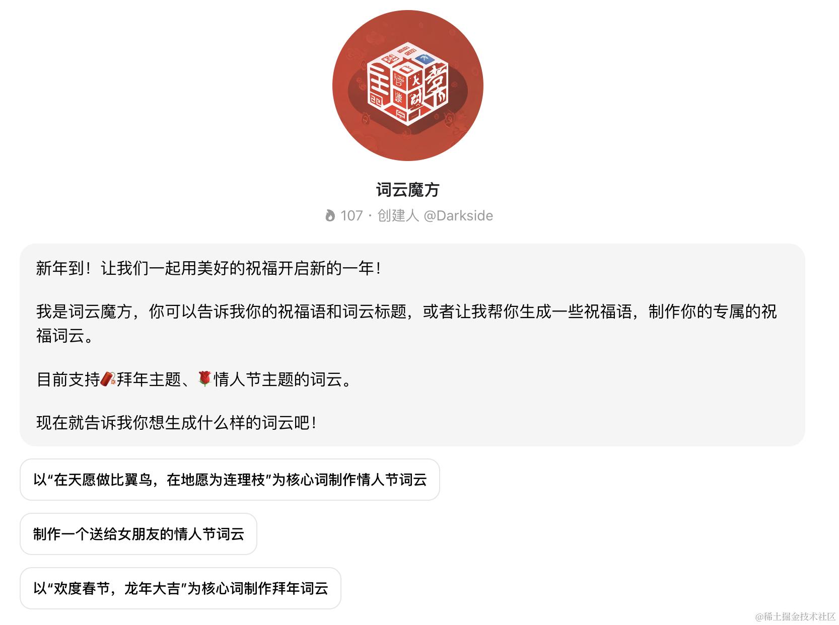通过 Coze、VisActor 两大套件的加持,我们使用2天时间,快速实现了基于对话生成词云的智能体——“词云魔方”。下面的视频可以带你快速学会如何通过聊天的方式生成福气满满的新年祝福词云: