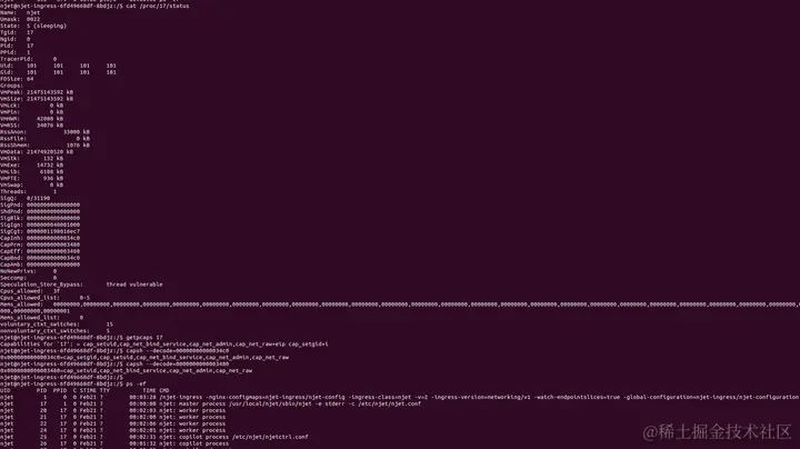 正常启动后,登录njet-ingress容器内可以查看容器进程的capability sets:
