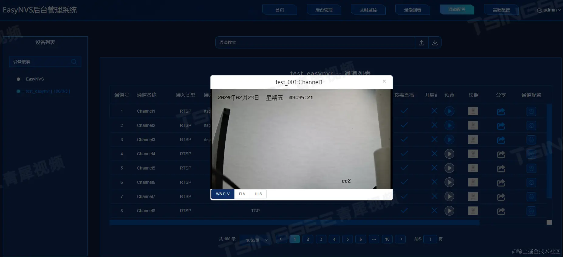 根据用户描述,在EasyNVS平台对下级多个EasyNVR平台进行集中管理,EasyNVS平台通道配置页面通道显示正常,视频播放也正常,如图:
