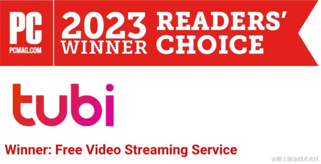 Tubi 在 2023 PCMag Readers' Choice 中荣获“最佳免费视频流媒体服务奖”,在流媒体服务整体满意度排名中 Tubi 名列第三,超过了 Netflix、Hulu、Max、Disney+ 、The Roku Channel 等。