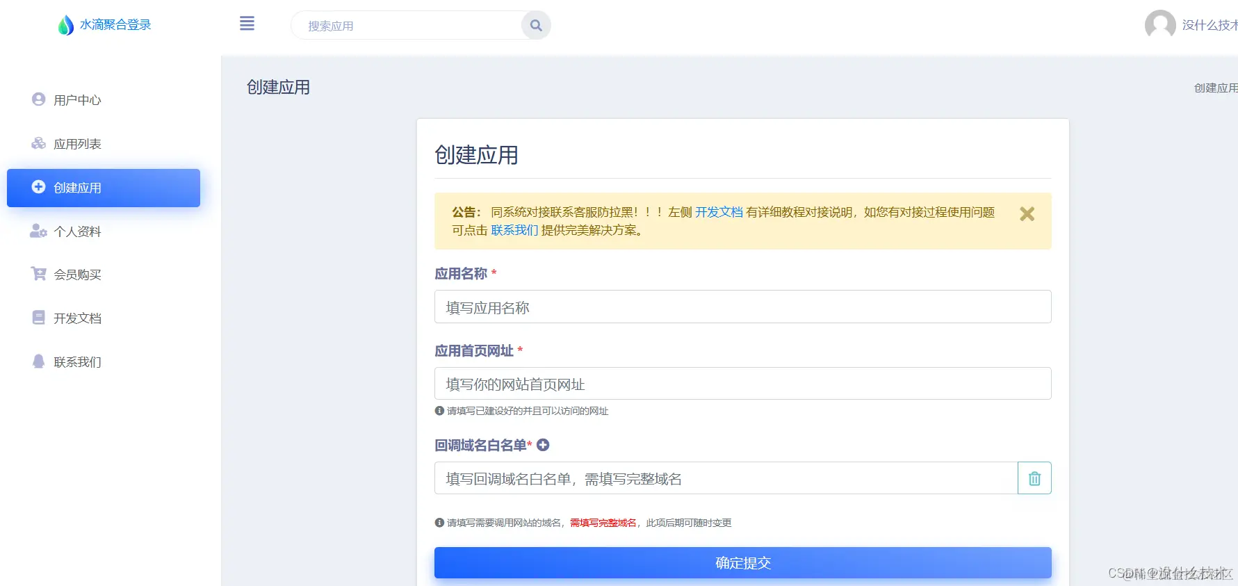 首先需要进入水滴官网创建应用:
