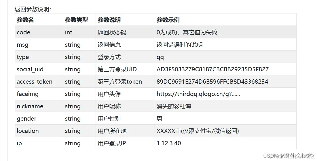 https:// uniqueker.top/connect.php?act=callback&appid={appid}&appkey={appkey}&type={登录方式}&code={code}