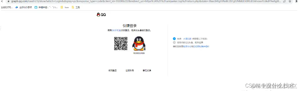 相当于我们主动访问这个url 同时加上自己的请求参数,访问该url,此时前端弹出弹窗或者新开一个页面得到如下的第三方登入页面