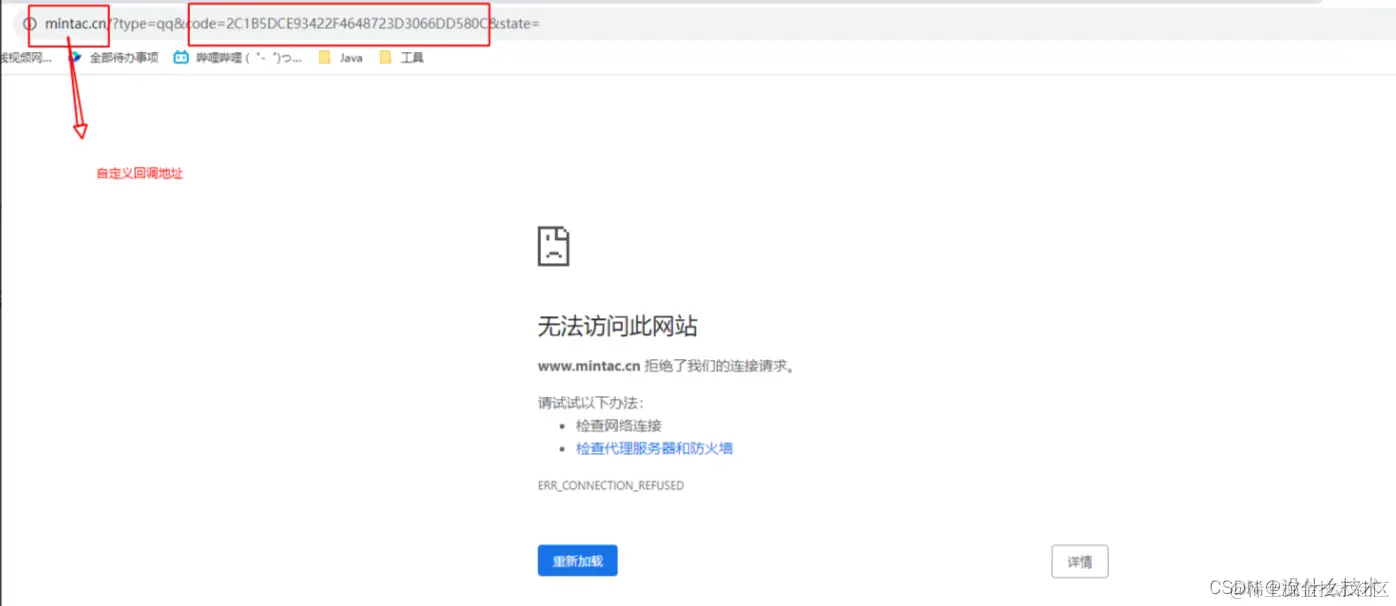 这里的code值也就是上一个接口重定向后得到的