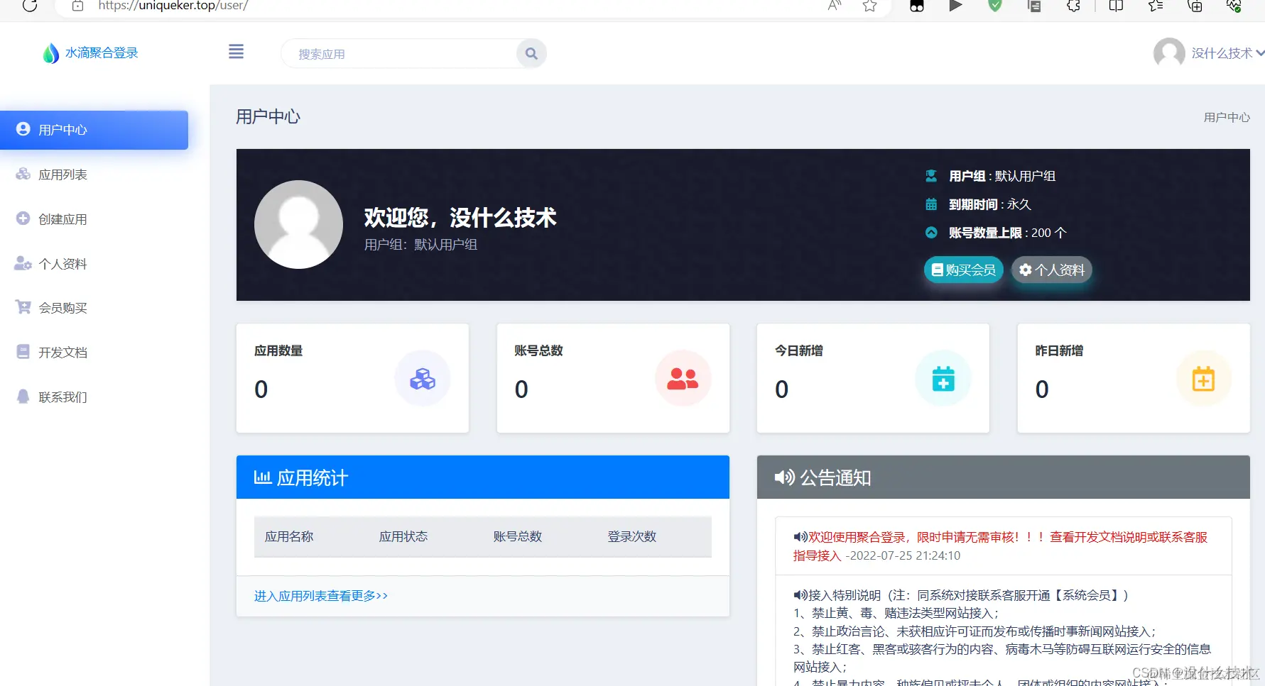 但是对于QQ、微信、微博等的网站接入都需要身份认证,过程比较繁琐,所以我们这里提供一种免签第三方技术平台-水滴聚合