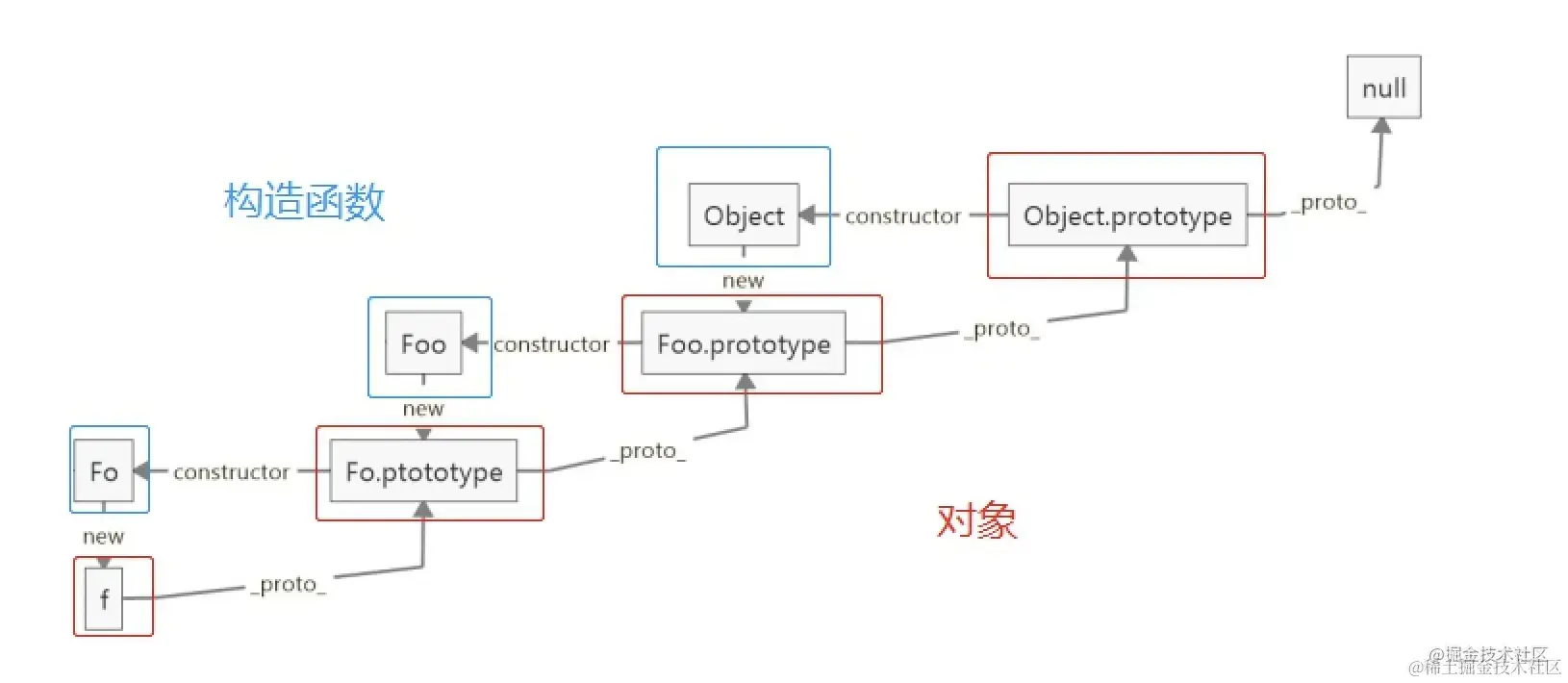 第二行,我们将这个空对象的__proto__成员指向了F函数对象prototype成员对象;