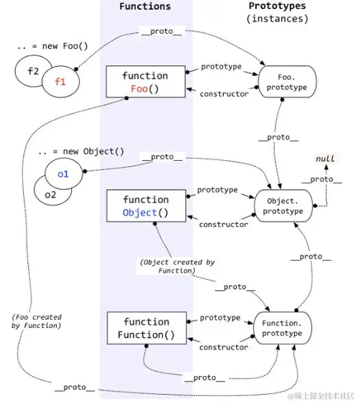 f.**proto** === F.protyotype F.**proto** === obj.protyotype obj.proto=== null