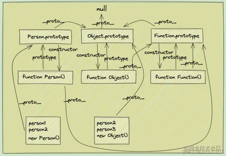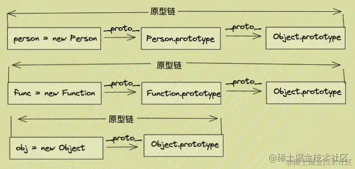 - 对象的 proto 属性指向原型, proto 将对象和原型连接起来组成了原型链