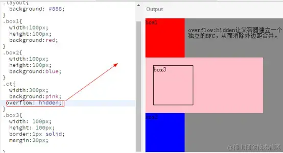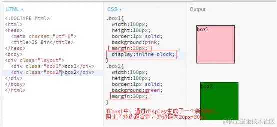(1) BFC会阻止垂直外边距合并(相邻元素,嵌套元素)。