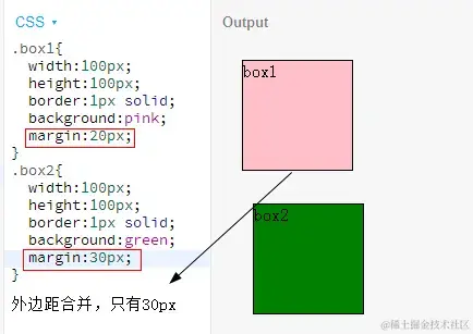1、两个外边距都是正数,取两者之中的较大者;