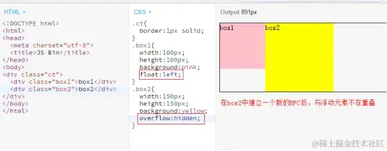 让正常元素,与浮动元素不在重叠。因为正常元素中建立了一个新的BFC。