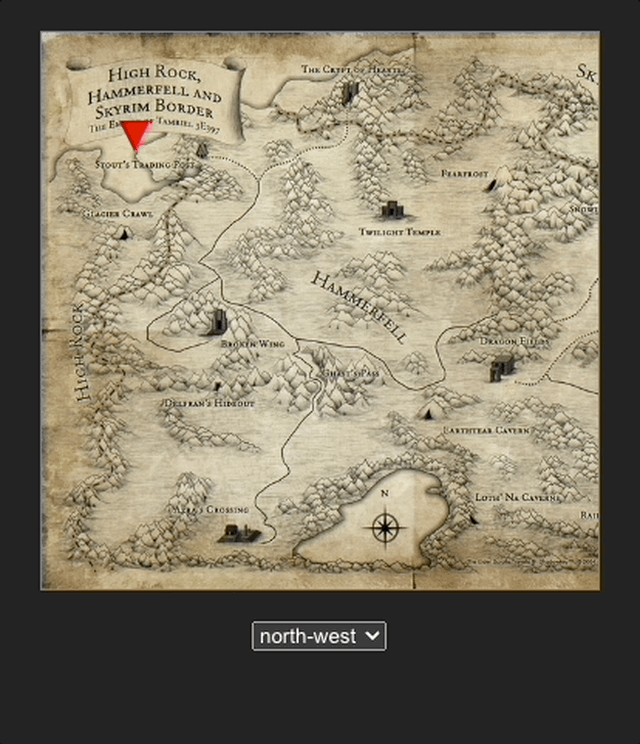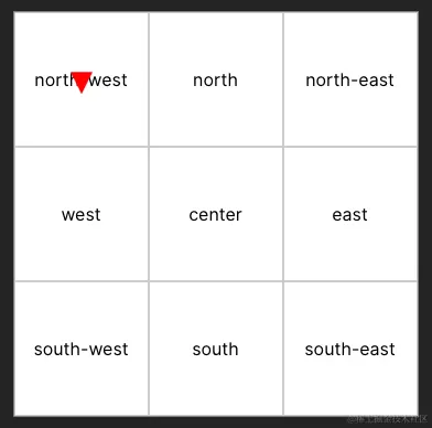 方位总共 9 个,东南西北中加上四个角,通过 Grid 布局让其形成 3 * 3 的格子。位置标识只需要根据方位数据出现在对应的 div 中即可。