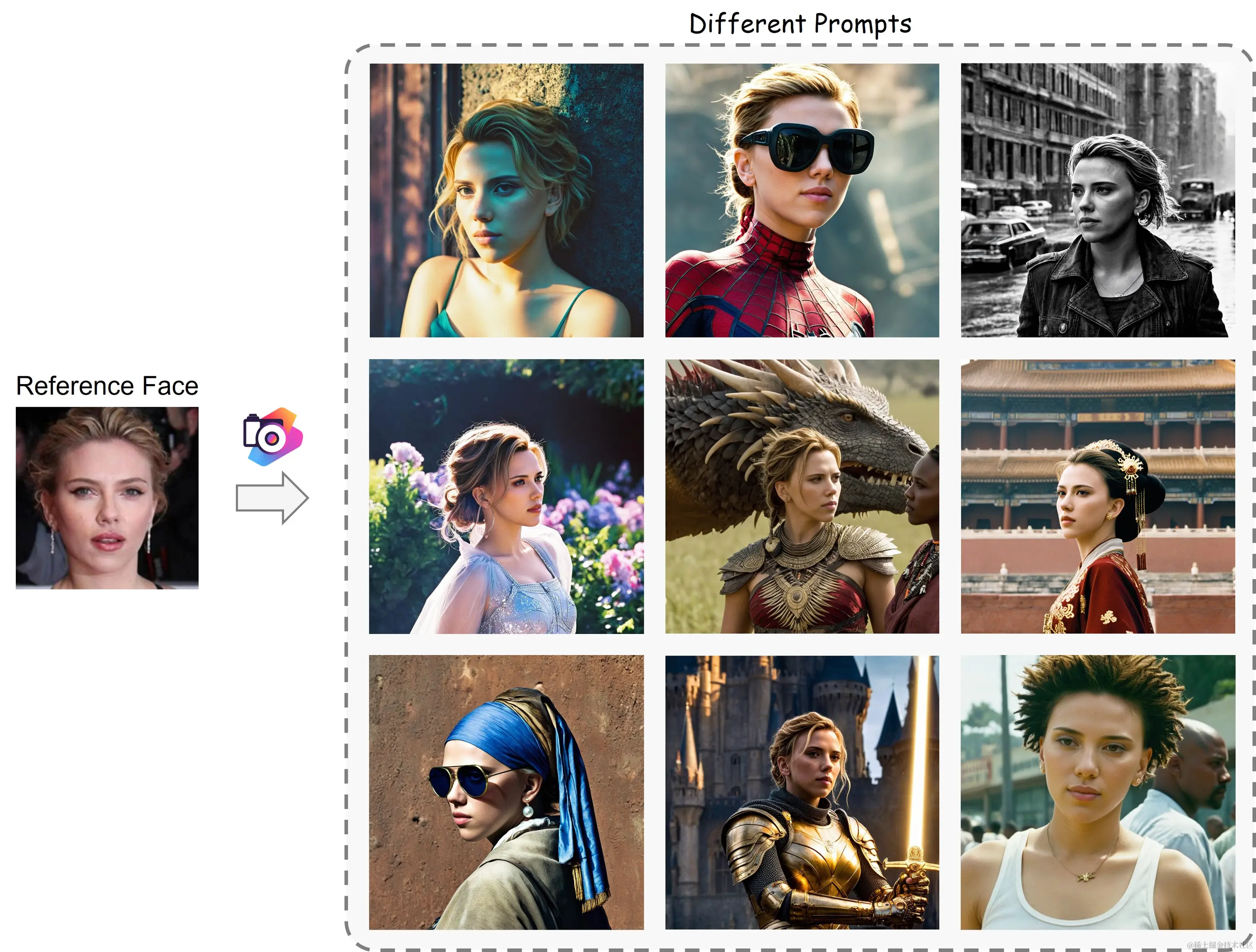PhotoMaker 使用的核心技术是“堆叠ID嵌入”。它可以将多个身份证明(ID)图像的信息合并成一个统一的数据结构。这种方法不仅能捕捉到单个ID的细微特征,还能整合多个不同ID的特征,创造出新的、个性化的图像。因此,当信息足够,PhotoMaker能够以前所未有的灵活性和准确性快速响应用户的定制需求,创造出逼真度高且风格多样的人物画像或其他类型的个性化图像产品。