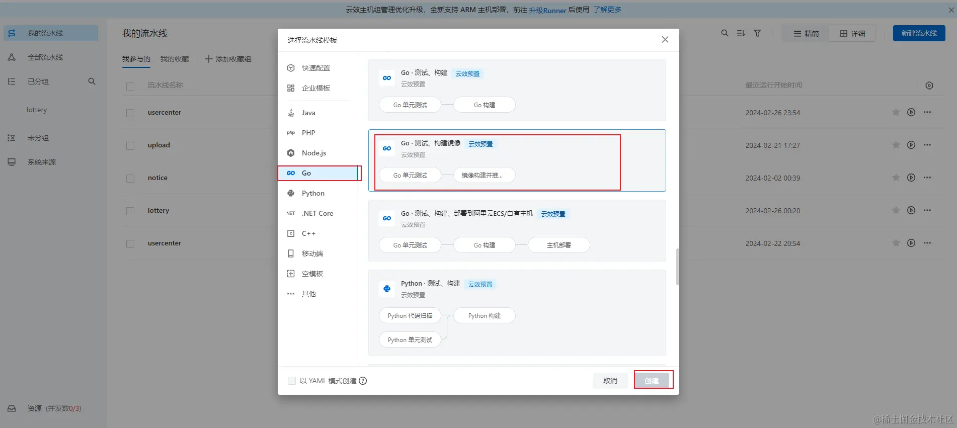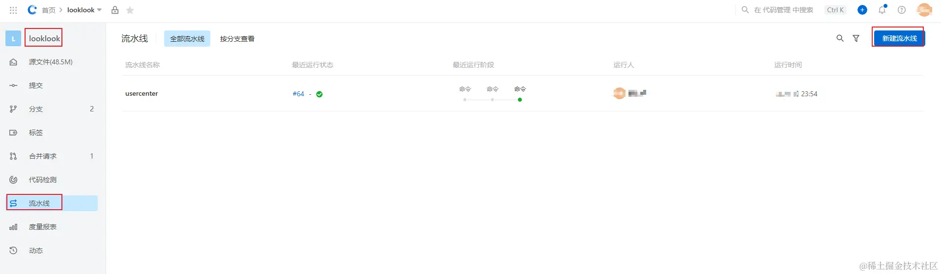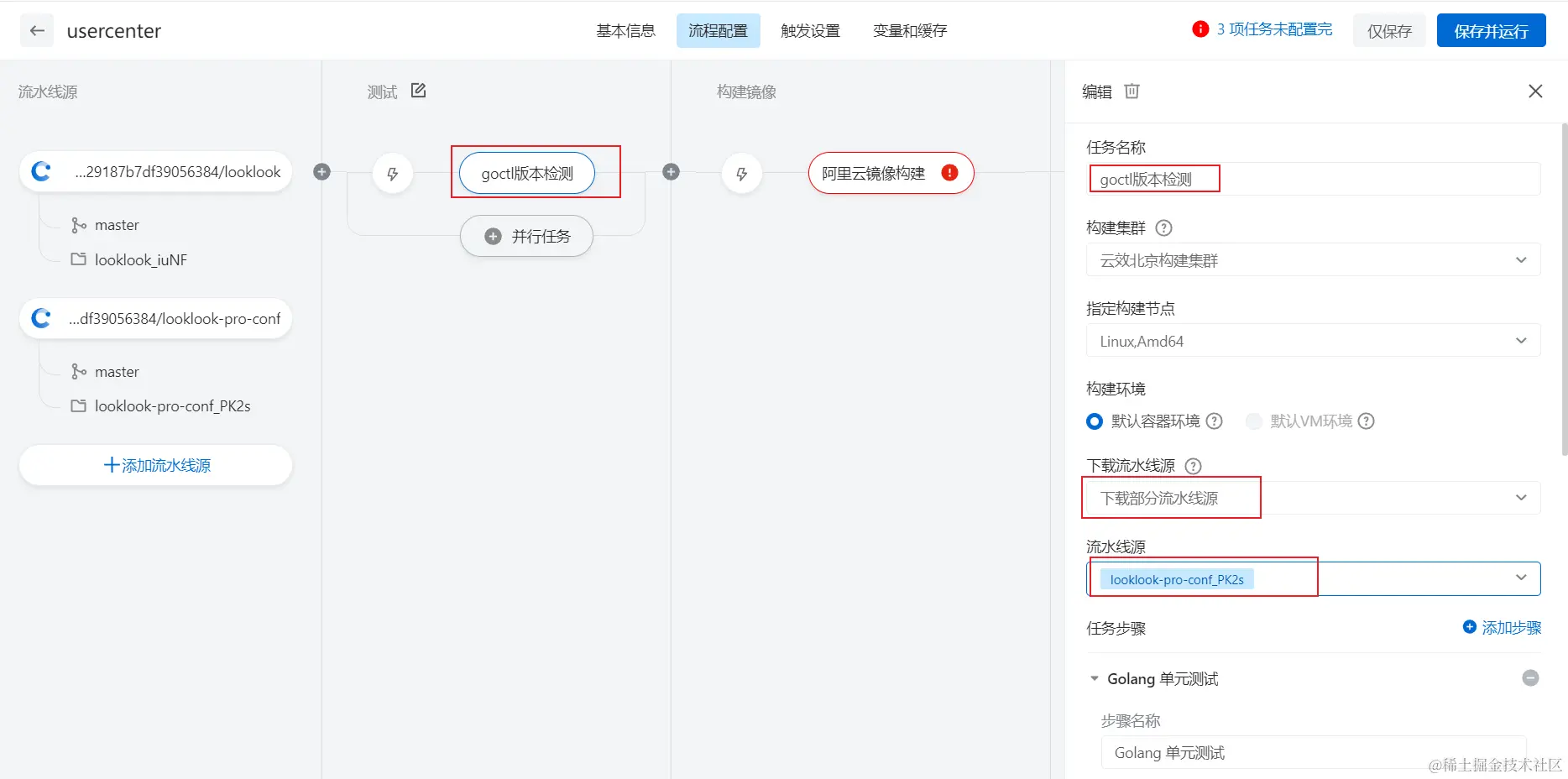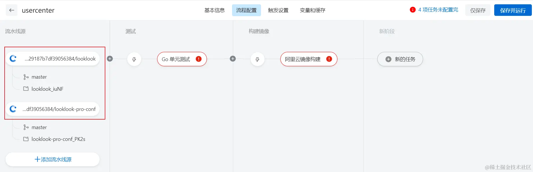我们先创建usercenter用户服务的流水线,如下图