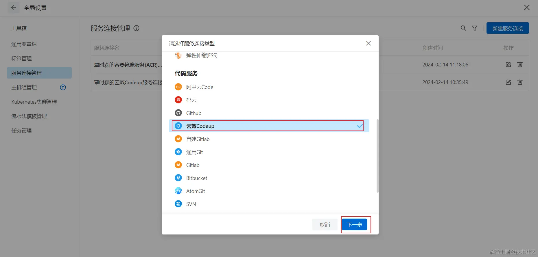 云效添加服务连接