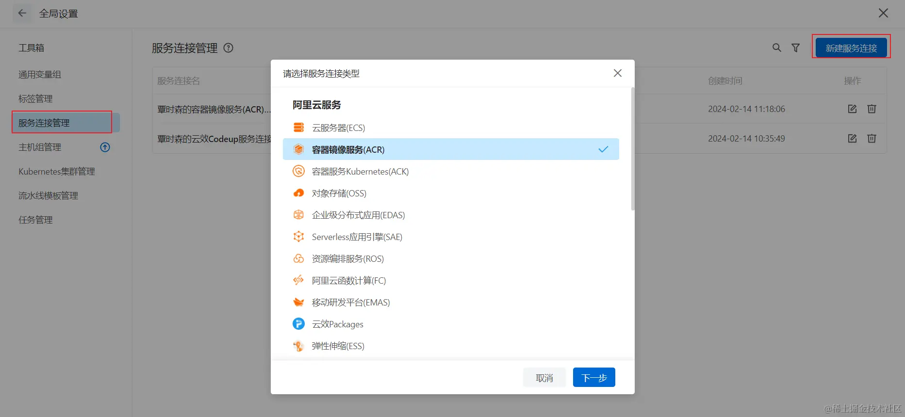 - 连接服务:容器镜像服务连接