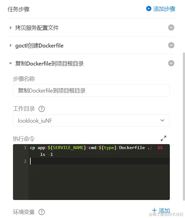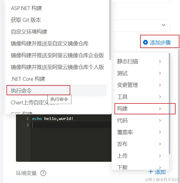 添加新步骤->构建->执行命令类型