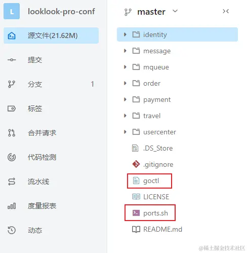 4)因为在云效流水线上我们需要知道对应服务的端口号,所以需要把port.sh一起上传到配置仓库里面 port.sh内容如下