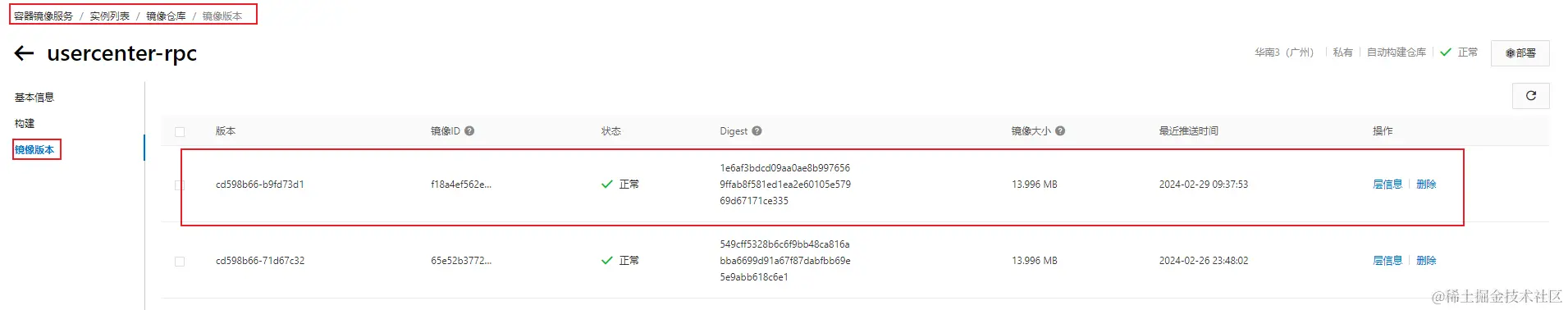 3、查看构建推送到容器服务的镜像