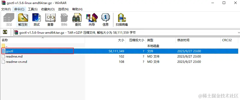 下载解压,只需要上传goctl文件